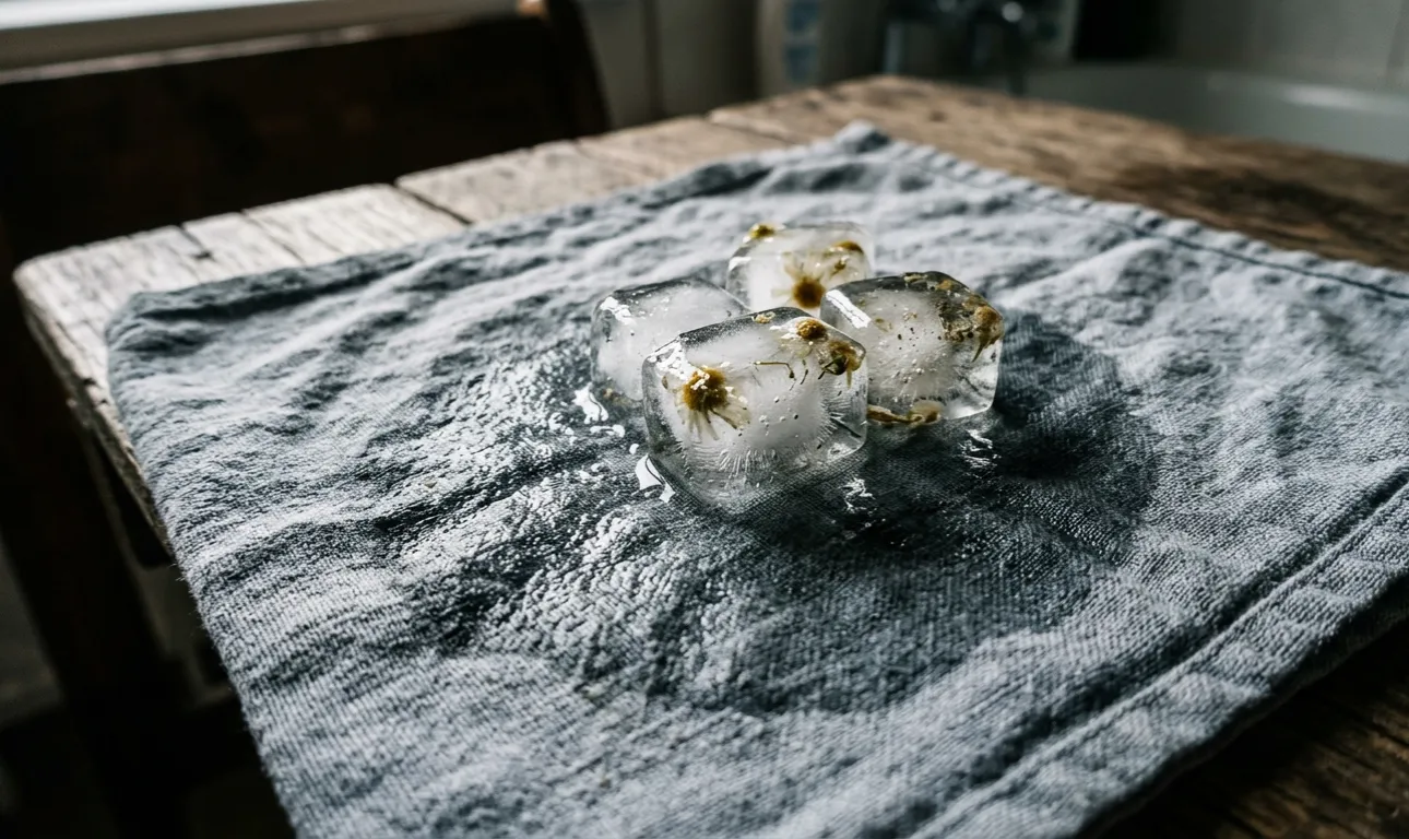 Dekolteepiirkonna hõõrumine jääkuubiku ja kummeliga annab kohese toniseeriva efekti.