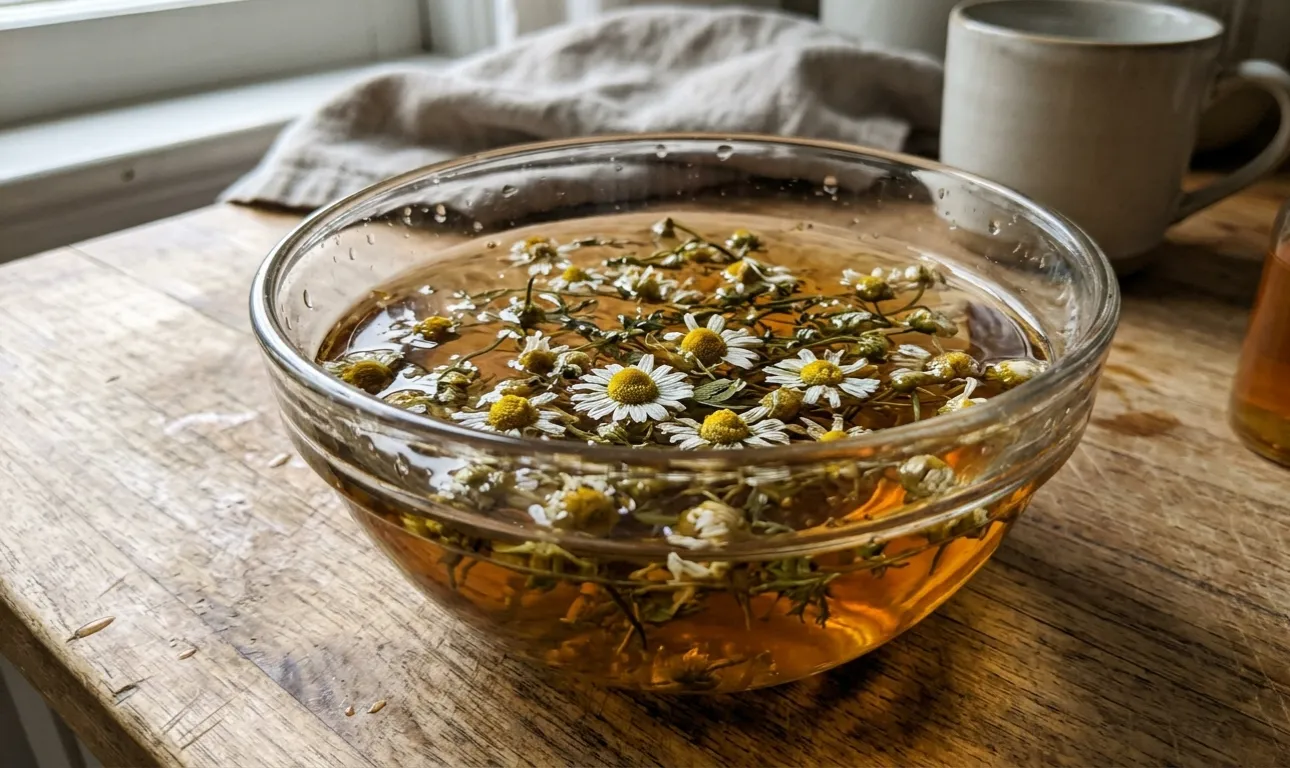 Kummeli- või nõgeseleotisega loputamine leevendab kohalikku ärritust ja rahustab juuri.