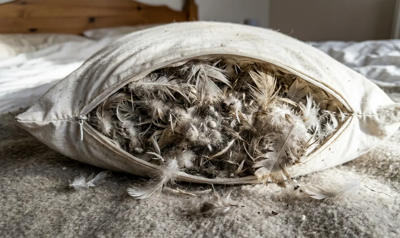 Salajane nüanss: Isegi kui vahetate regulaarselt padjapüüri, tungivad hävinud sulgede mikroosakesed kergesti läbi paksu padjapüüri. Proovisin kasutada topeltkatteid, kuid see on vaid ajutine meede ega lahenda vana täidise probleemi.